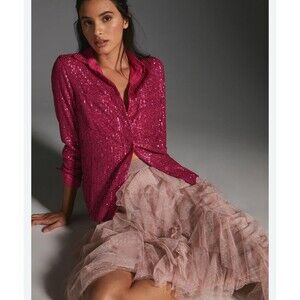 Anthropologie Pink The Remie Sequin Button Down Size Medium