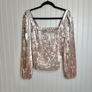 Anthropologie Pink Velvet Square Neck Long Sleeve Top Medium E37
