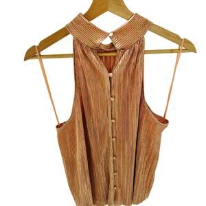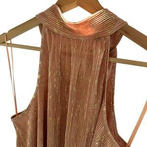 Anthropologie Pink and Gold Shimmery Metallic Halter Blouse- Women's Size Small