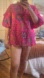 Bold pink blouse with striking orange and purple designs. Crafted by Anthropologie.