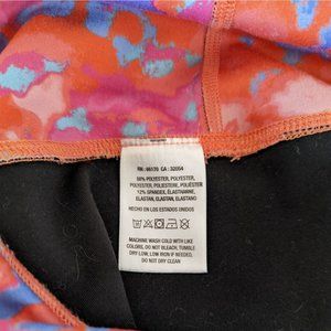 Bold abstract pattern. Includes matching top and leggings. Ideal for workouts or casual wear.