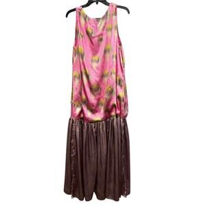 Anthropologie Pink and Tan Maxi Dress