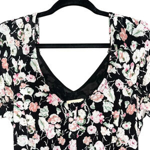 Anthropologie Pins and Needles Black Floral Print Open Back Maxi Dress Medium