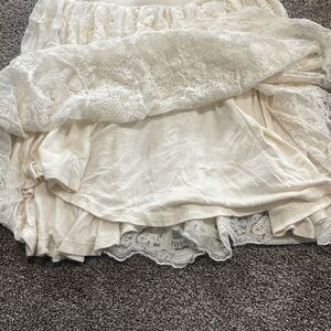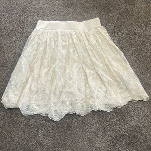 Beautiful lace skirt from urban outfitter. No stains or holes, in excellent condition. Has elastic waist band and fully lined with cream jersey knit fabric.