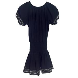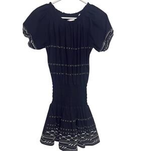 Anthropologie Piper by Townsen Black Embroidered Mini Dress Small Smock Cottage
