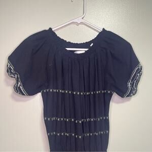 Keywords: anthropologie dress, piper by townsen dress, embroidered mini dress, black boho party dress, smocked puff sleeve dress, festival style dress, cottagecore inspired mini, off shoulder short sleeve dress, women’s small boho chic, embroidered black summer dress, indie floral embroidered dress, trendy fitted mini