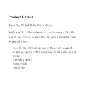 Serve your favorite beverages in style with this elegant glass pitcher. It features a classic striped design in green and brown, adding a touch of sophistication to any dining setting.