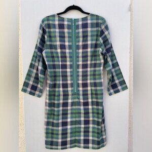 Anthropologie Piplette A-Line Green/Navy Summer Plaid Print Midi Dress Size 6