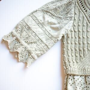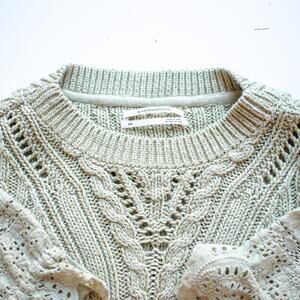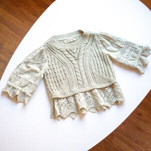 Anthropologie Pistachio Cable-Knit Lacey Sweater Size XXS