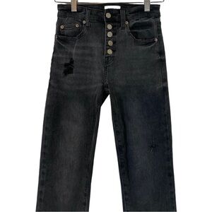 Anthropologie Pistola High Rise Distressed Slim Straight Leg Jeans Black Size 24