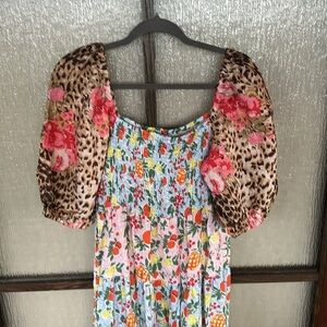 Anthropologie Place National linen floral print midi dress size medium NWOT