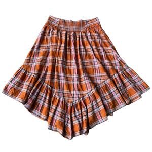 Anthropologie Plaid A-Line Midi Skirt high low high waisted size XL