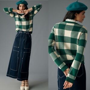 Anthropologie Plaid Ruffle Collar Pullover Sweater