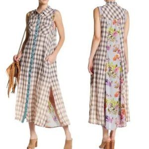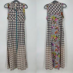 Anthropologie Plaid and Floral Maxi Dress - Black, White, Blue, Multicolor