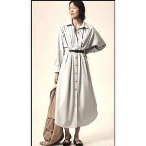 Anthropologie Pleated Buckle Midi Shirt Dress Sz 6P Blue NWT