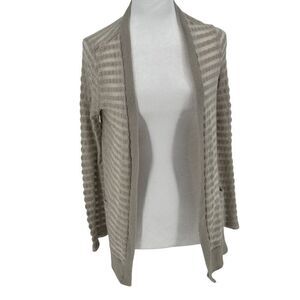 Keywords: #Anthropologie #PleioneCardigan #CottonBlend #SizeS #LightweightSweater #StripedPattern #TaupeAndCream #LayeringPiece #CasualChic #OfficeWear #PoshFinds #VersatileFashion #WardrobeEssential #ExcellentUsedCondition #BohoStyle