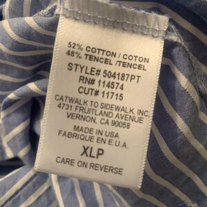 Anthropologie Pleione Cotton/Tencel loose top, with blue/white stripes. Features elastic at shoulders and pretty bow..can be worn off shoulder if wanted.. Measures 21” armpit to armpit..