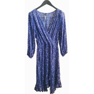 Add a touch of bohemian style to your wardrobe with this Anthropologie dress in a beautiful shade of blue. The dress features a star pattern, long sleeves, and a V-neckline. The pullover closure makes it easy to wear, and the ruffle hem adds a playful touch. Perfect for any occasion, from casual outings to weddings and parties.