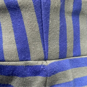 Blue and gray striped. Zipper and hook and eye closure. Pencil skirt.
