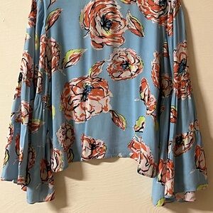 Anthropologie Plenty by Tracey Reese Blue Floral Bell Sleeve Top Boho Bohemian Size Medium. Gently worn with no flaws to note.
