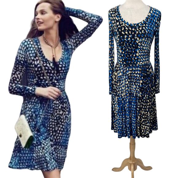 Anthropologie Plenty by Tracy Reese Dotscape Fit & Flare Abstract Print Blue M