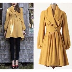 Anthropologie Plenty by Tracy Reese Mustard Mod Rockabilly Jacket Coat Sz Small