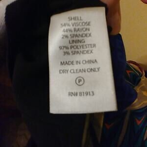Shell: 54 viscose 44 rayon 2 spandex