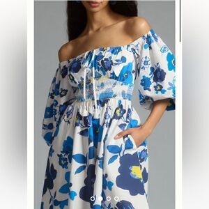Gorgeous anthro plenty by Tracy Reese off the shoulder smocked floral dress. Never been worn, with tags attached. Could be worn on shoulders for puff sleeve look. 100% cotton. Smocked bodice. Pockets. Midi length. Super flattering!