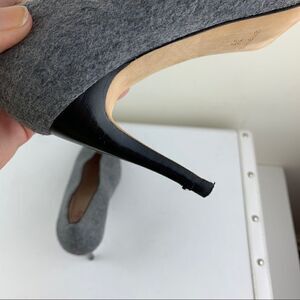 Anthropologie Plenty by Tracy Reese Women’s Felted Gray Fabric Pumps w/Skinny Black Sculptural Heel Sz 36 (6). Some wear to sole, nicks in heels, glue residue on lining a a tiny bit of wear to fabric as shown. Still look great on. 3” stacked heel. Please see photos for additional details.