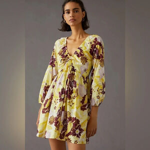 Anthropologie Plus Size V Neck Yellow Floral Mini Dress XL