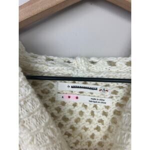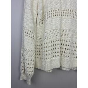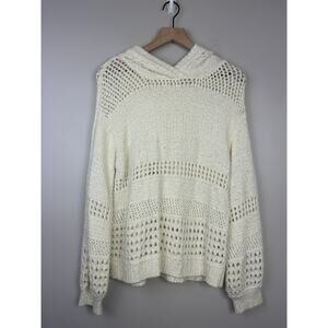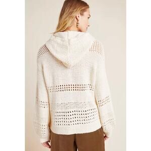 Anthropologie Pointelle Hooded Knit Pullover Sweater Cream Boho Sz Small