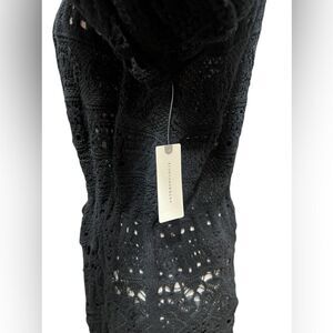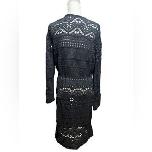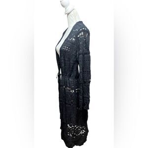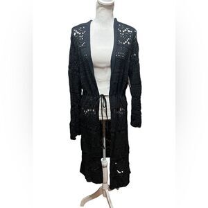 Anthropologie Pointelle Knit Black Long Tie Waist Sweater Cardigan Size L NWT
