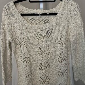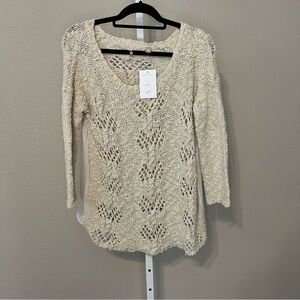 Anthropologie Pointelle Pullover Ivory Tunic Top By Knitted & Knotted Size M