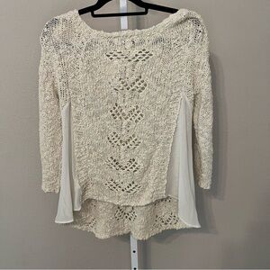 Anthropologie Pointelle Pullover Ivory Tunic Top By Knitted & Knotted Size M
