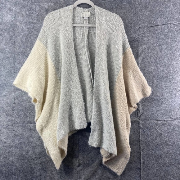Anthropologie Poncho Cardigan One Size Colorblock Fuzzy Knit Open Layering Shawl