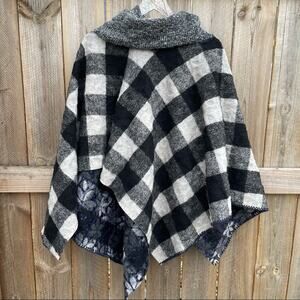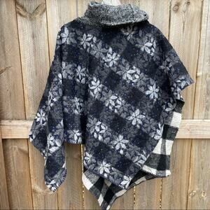 Anthropologie Poncho Wintertide Wool Blend Reversible Pullover One Size Floral