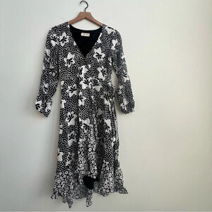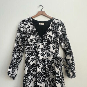 Anthropologie Porridge Black White Floral Amity Wrap Dress Size XS Long Sleeve