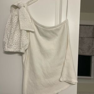 Anthropologie Porridge Eyelet Bow One Shoulder Top