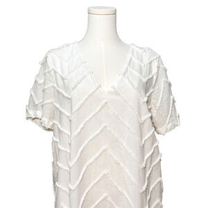 Anthropologie Porridge Marcelle Textured White Short Sleeve Shift Dress Medium