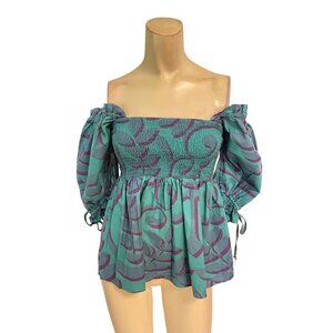 Anthropologie Porridge Off-Shoulder Boho Smocked Blouse XS Cotton Blend Green &