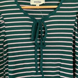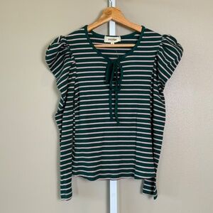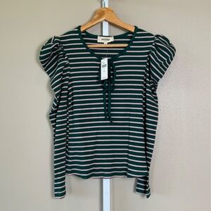 💚🩷 New with Tags Anthropologie Porridge Puff-Sleeve Tie-Front Top 🩷💚