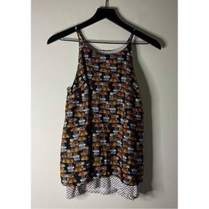 Novelty print layered tank from Porridge for Anthropologie. Retro suitcase print with split back. Contrasting gray and white print under layer. Size XS. Gently preowned condition with no tears or stains.