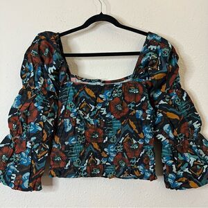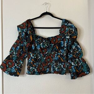 A romantic silhouette and an enchanting motif infuse this top with a whimsical sensibility. Balance its voluminous fit by tucking it into denim shorts or a high-waisted pair of pants.
