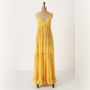 Anthropologie Porridge Yellow Lobster Print Tiered Maxi Dress Size Small