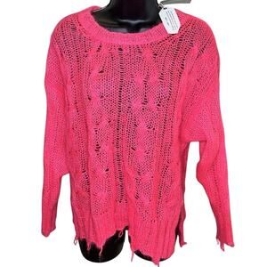 Anthropologie Posey Stitchy Sweater Women’s XSP Pink Distressed Open Knit NWT