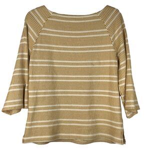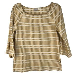 Anthropologie Postage Stamp Knit Top Square Neck 3/4 Sleeve Striped Yellow XS