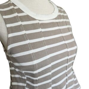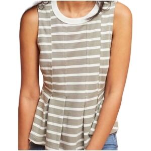 Anthropologie Postage Stamp gray and white, striped, peplum tank top.