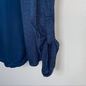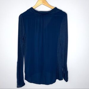 Anthropologie Postage Stamp Long Sleeves Top size Small, contrasting teal fabrics, solid with Jersey sleeves, roll tab sleeves, 100% modal, good Condition