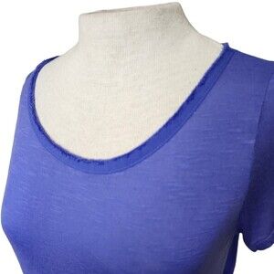 Anthropologie Postage Stamp purple t shirt with contrasting fabric along bottom and stitch on back to make it more flattering.