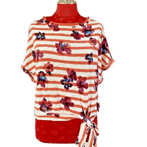 Anthropologie Postage Stamp brand tee shirt top - size XS - a Cropped T-Shirt Top pullover done in Red & white Stripes with multicolor Floral highlights. A cute side tie at the waist is a fun detail. Clearly tagged - easy care machine washable. Gently worn - no flaws - so cute!